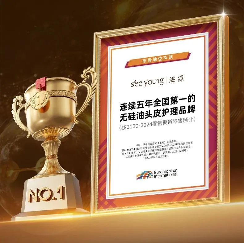 【10】根据欧睿咨询(上海)有限公司调研数据:中国大陆市场,按2020-2024年单年零售渠道销售额计,“滋源”是中国第一的无硅油头皮护理品牌。